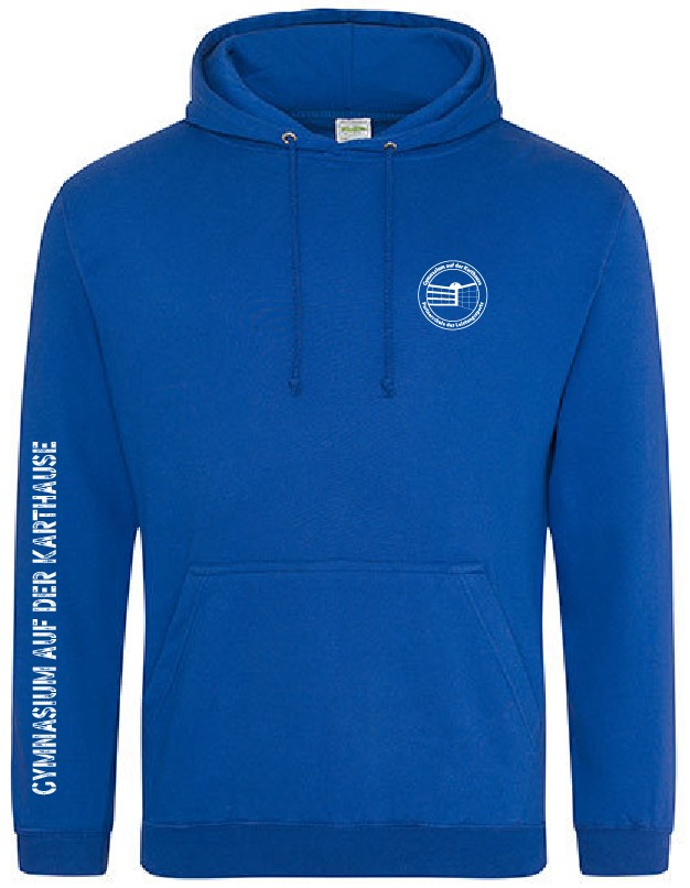 - Inkl. Druck Logo „Gymnasium auf der Karthause“ auf der linken Brustseite und großer Schriftzug auf dem rechten Ärmel